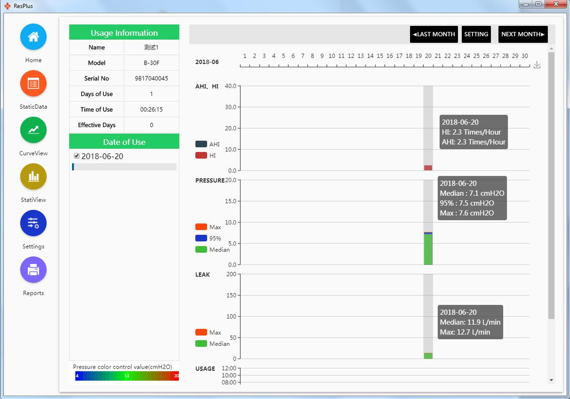 Equipped with an advanced algorithm, the Resplus CPAP/APAP Machine proficiently identifies and analyzes diverse respiratory events. Conveniently review your sleep data on the device's screen or a Windows computer.